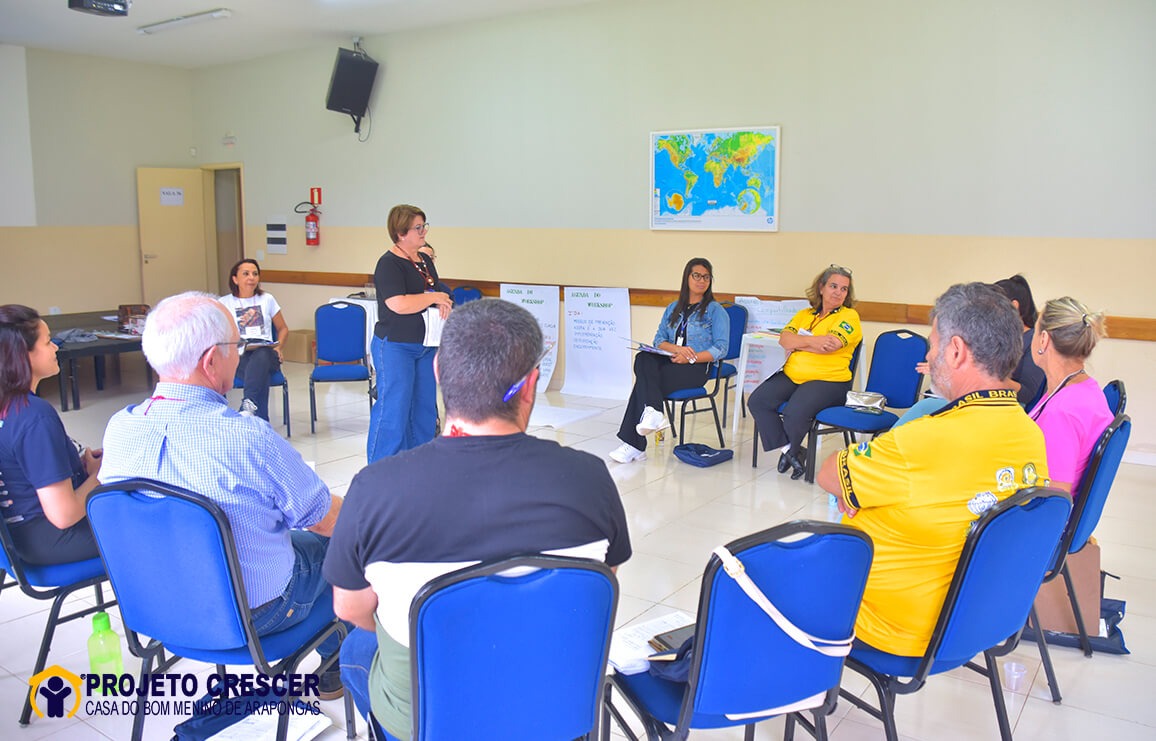 Esta capacitação foi realizada no espaço da Casa do Bom Menino - Projeto Crescer, nos dias 16 e 17 de fevereiro, sendo ministrada pela capacitadora Lígia Hoss, de Estrela, Rio Grande do Sul. Participaram, além de professores e coordenadores do Projeto Crescer - Arapongas, professor e coordenadora da Escola José Luiz Gori, de Mandaguari, e integrantes dos Lions Clube de Mandaguari e Rolândia.