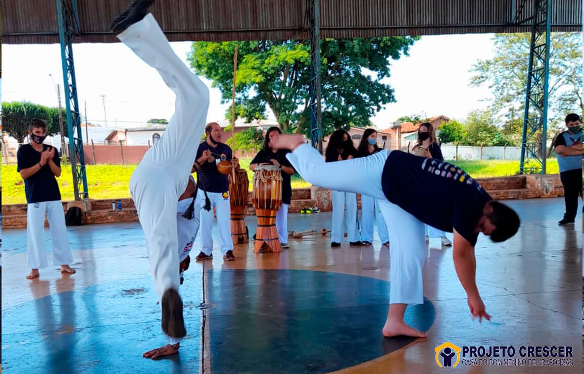 A entidade foi representada por alunos da Oficina de Capoeira.